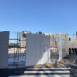 建物全体がシートで囲まれており、内部の様子は見えない状態となっています。