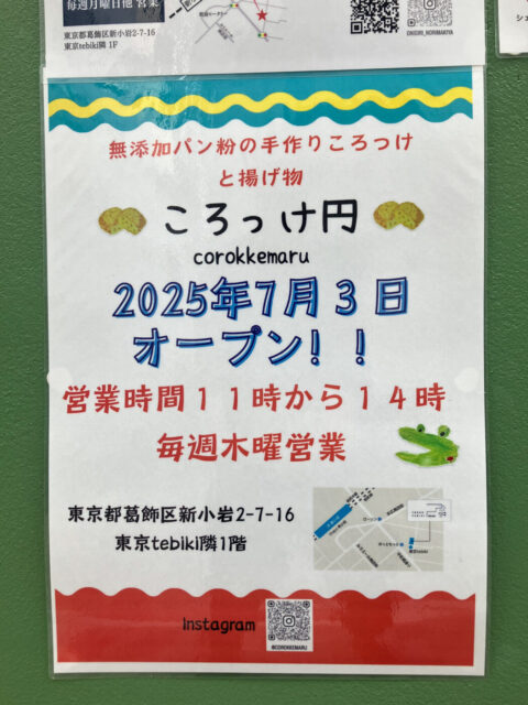 新小岩2丁目に「ころっけ円(まる)」が7/3(木)からオープン、手作りコロッケと揚げ物のお店