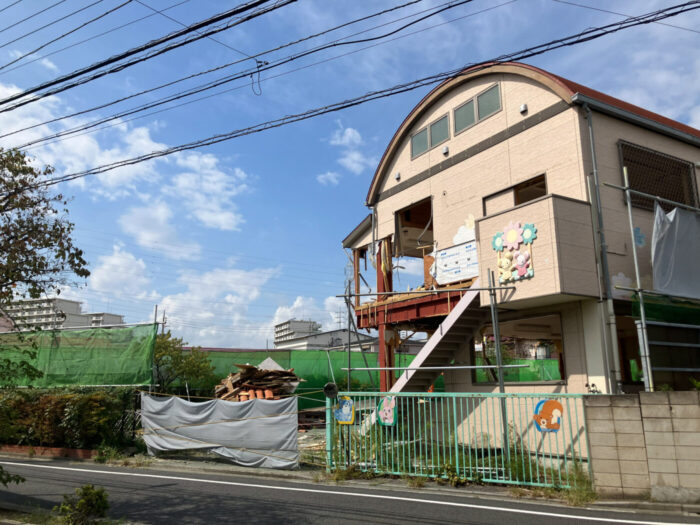 長年地域で親しまれた幼稚園の建物が解体されていく光景は、時代の移り変わりを感じさせます。