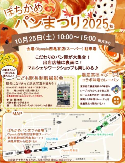 10/25(土)オリンピック 西亀有店駐車場にて「ぽちかめパンまつり」が開催、まちのこだわりパン屋さんが大集合!