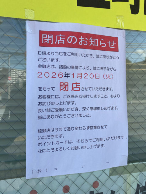 東金町2丁目の「ファミリーファッション コニー」が2026年1月20日(火)をもって閉店することが発表されました。