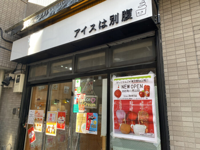 葛飾区新小岩のソフトクリーム専門店「アイスは別腹 新小岩店」の店内に、りんご飴専門店「びっくりんご 新小岩店」が2025年11月22日に新登場しました。