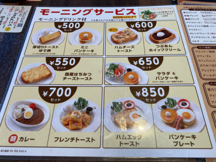 平日のオープンから11時までモーニングサービスを展開。