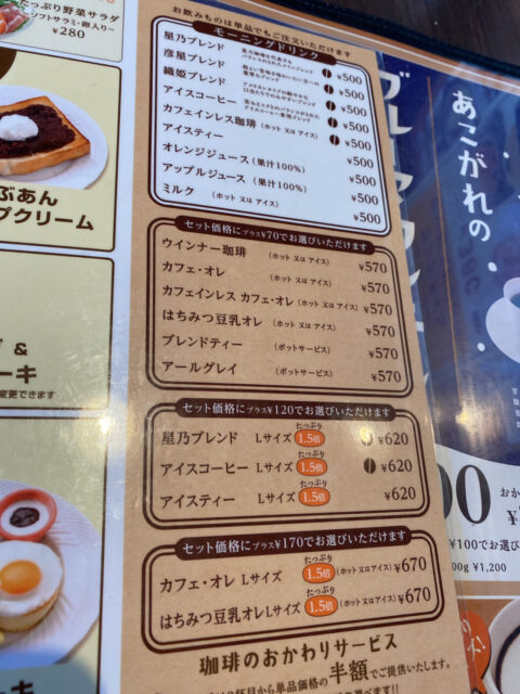 これらにコーヒーがついての値段となります。