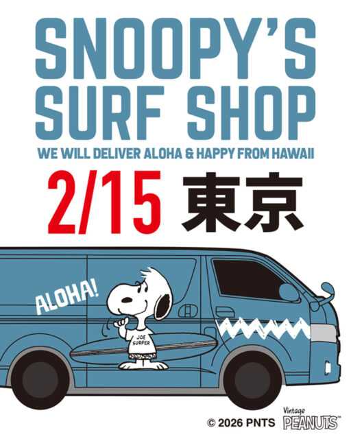 ハワイより PEANUTSオフィシャルサーフショップの「SNOOPY’S SURF SHOP」が、2026年2月15日(日)に移動販売車でやって来ます。