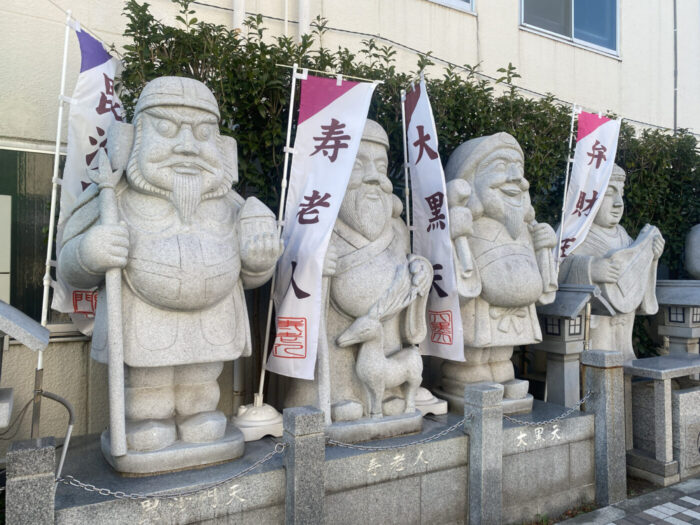 境内には祖霊社や斎館もあり、裏手には十二支神の石像群も配置されています。七福神と合わせて参拝すれば、より多くの御利益を得られそうです。