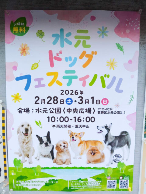 2/28(土)3/1(日)水元公園にて「水元 ドッグフェスティバル」が開催されますよ。