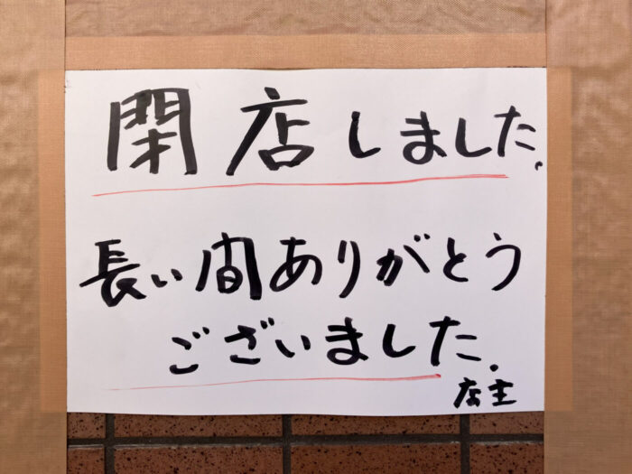 具体的な日付は不明ですが、閉店を案内する張り紙がありました。