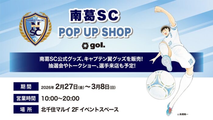 2/27(金)〜3/8(日)北千住マルイにて「南葛SCポップアップショップ」が開催、3/1(日)には岡野雅行氏トークショーも