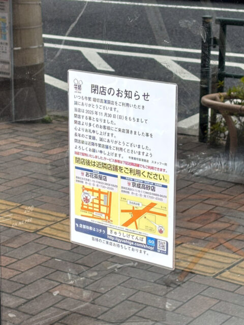 葛飾区堀切4丁目の堀学ビル1階で営業していた「元氣七輪焼肉 牛繁 堀切菖蒲園店」が、2025年11月30日をもって閉店しました。現在は内装工事業者による撤去作業が進んでいるとのことです。