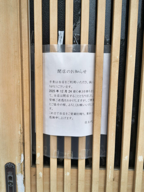 閉店を案内する張り紙がありました。
