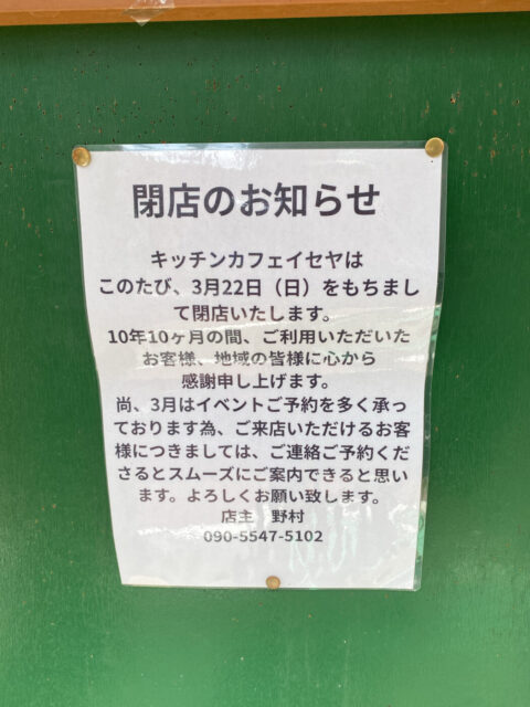 葛飾区堀切5丁目の「Kitchen cafe ISEYA(キッチンカフェイセヤ)」が3/22(日)をもって閉店されていました。